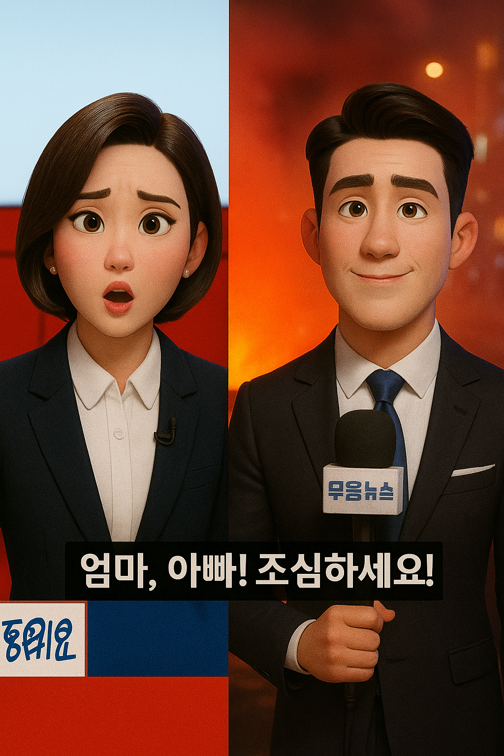 한눈에 보기엔 뉴스 클립 같지만 사실은 AI가 만든 가짜입니다.