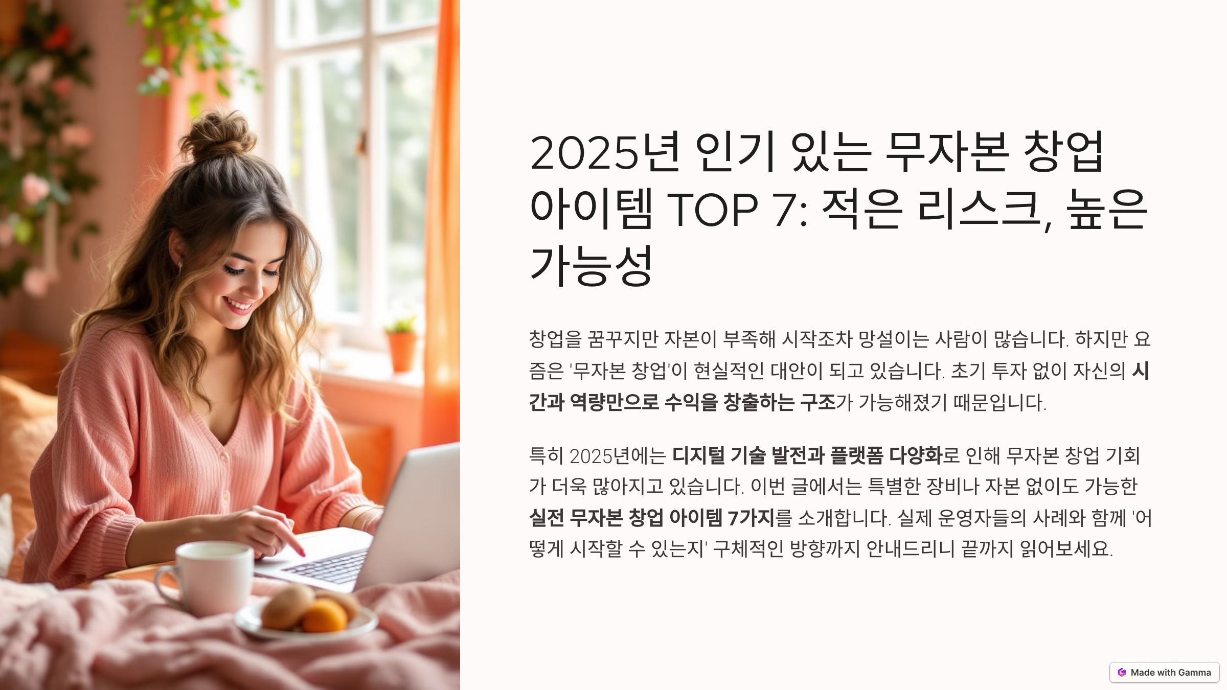 이번 글에서는 특별한 장비나 자본 없이도 가능한 실전 무자본 창업 아이템 7가지를 소개합니다.